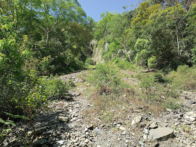 抵達溪床旁,看到這個告示就想到攀登唐麻丹山時下切蝴蝶谷瀑布